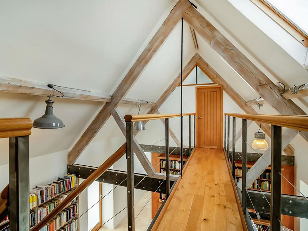 Bedroom 2 has the family bathroom next to it and further along, above the living area is a library area with plate glass windows to the east and west. This area leads to a mezzanine bedroom 4 with sitting room, shower room and bedroom above.